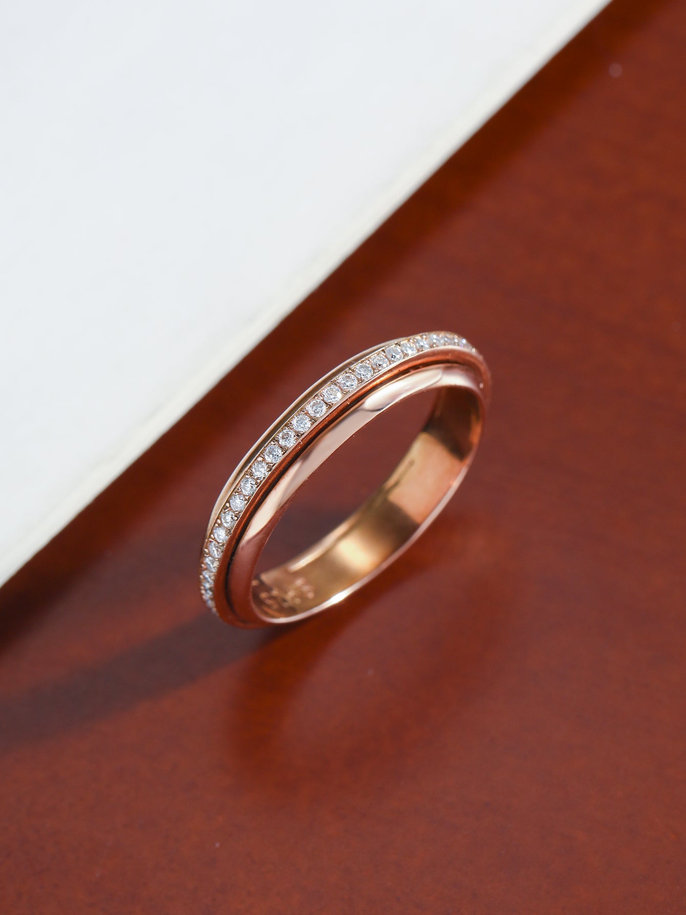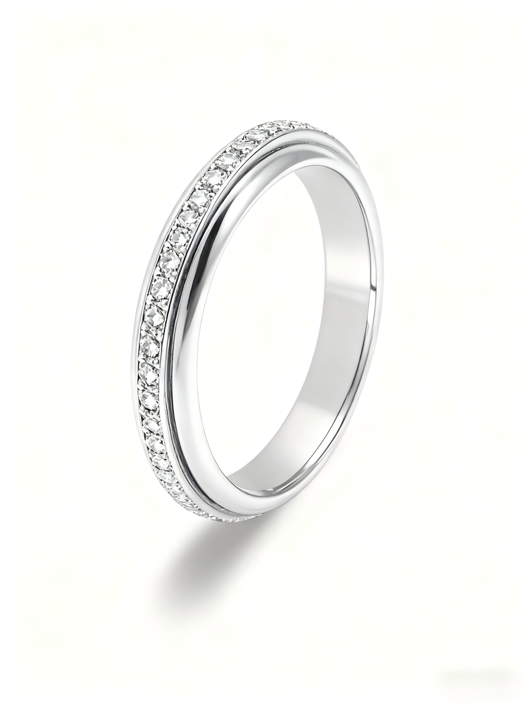 Featuring a softly rounded 4.8mm band and a fully pavé-set rotating center ring, it offers a smooth, soothing spin that helps ease anxiety, nervous habits, or moments of restlessness.